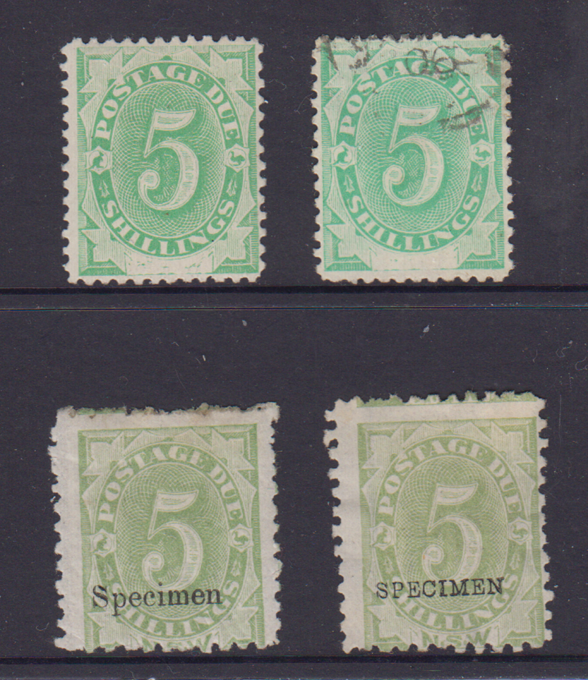 I note for the record that there is no listing of the flaw for NSW 5/- postage due stamps. But as can be seen in the above scan they clearly exist. Again, as with all these flaws, a full sheet is needed to settle sheet position and number of occurrences questions.