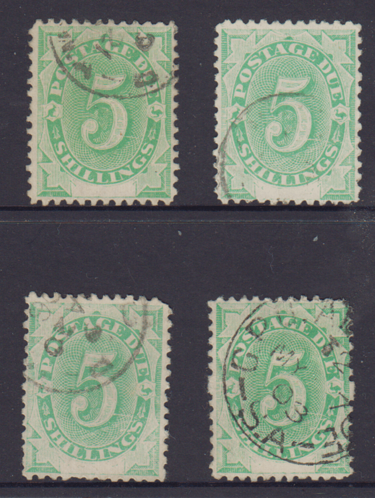 - Flaw 5c – a 1 or 2 line fine scratch from the base of the number “5” in a downward left direction until it crosses the oval frame between the letters HI of “SHILLINGS”.